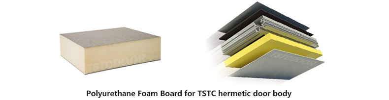 5. The door body of TSTC hermetic sliding door adopts rigid polyurethane integrated high-pressure foaming process, high-strength aluminum alloy frame, and is formed by large platform of automatic lifting hydraulic equipment. Special equipment and technology to ensure good flatness of the door. The surface of the door leaf can be decorated according to the client’s requirements , including the stainless steel plate, spray steel plate, aluminum plate, HPL Plate, PVC plate, with a variety of different colors .