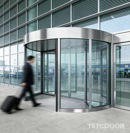 TSTC 2 wing revolving door with the model TAR200 is arguably the safest revolving door for the main entrance area of the modern buildings like the airport, shopping mall, office building etc., not only due to its safety glass and high-strength profiles, but primarily because of its intelligent control system and over 30 sensors and safety devices. Furthermore, its large size combined with the "revolving+sliding door" design ensures a wide opening width, guaranteeing swift passage for personnel escaping danger through the doorway even in sudden emergencies .